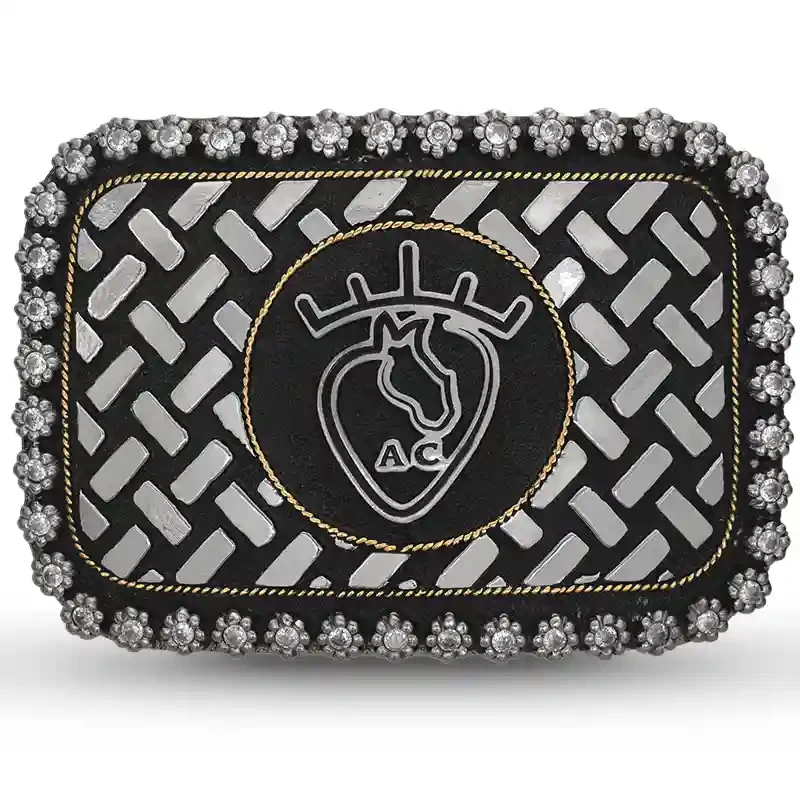 La hebilla charra Gómez Palacio es simplemente elegante, una pieza que combina sofisticación y tradición. Berries finamente trabajados rodean toda la hebilla, mientras que un torsal en tumbaga aporta textura y detalle. Su base de alpaca con mateado negro resalta los delicados acentos en tumbaga, creando un contraste que llama la atención. En el centro, un torsal circular sirve como espacio perfecto para agregar tu fierro de herrar, personalizando la hebilla a tu estilo. Cada elemento está pensado para que esta hebilla no solo se vea increíble, sino que refleje auténtico arte charro.